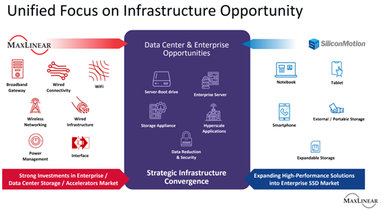 慧荣科技也表示,合并后的 MaxLinear将跃升为前十大无晶圆厂半导体供应商。